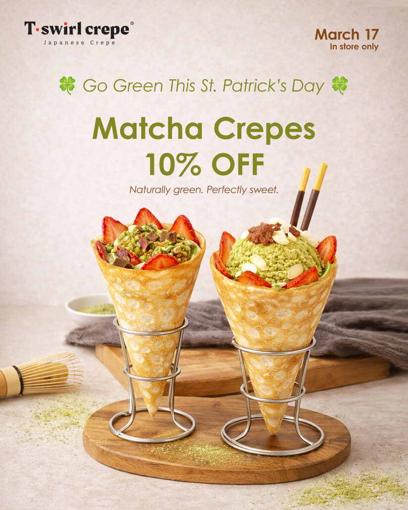 NEW Spring-Inspired Matcha Tiramisu Crepe! 🍵✨A Japanese classic with a fresh, seasonal twist – only at T-Swirl Crepe!